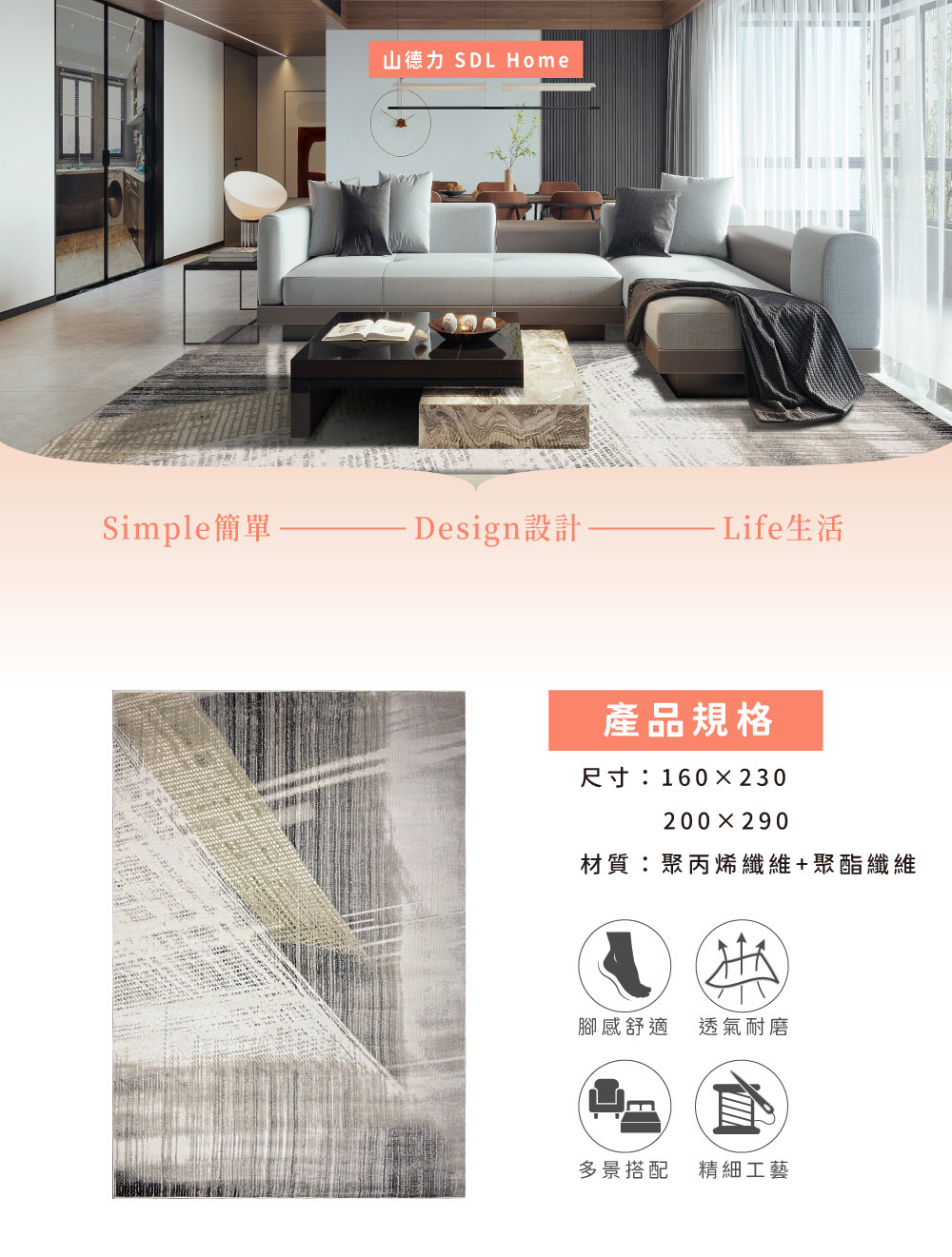 【山德力】現代線條感地毯 戴蒙